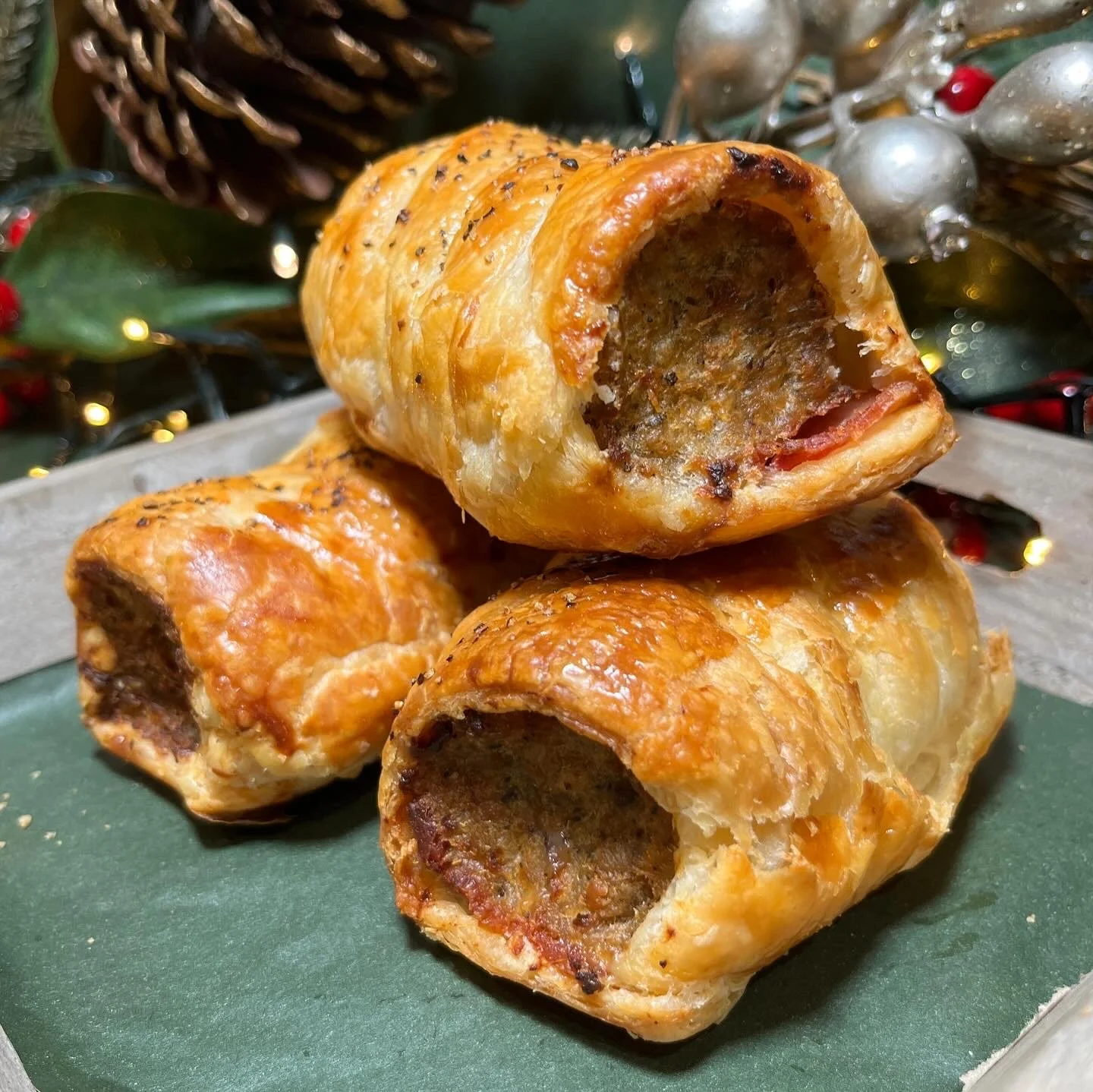 Handmade to order with a range of amazing Christmas themed flavours we offer these in boxes of 6. Each sausage roll is around 5cm - 6cm making them the perfect size for snacking on or serving as part of a buffet.
